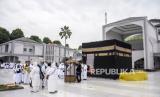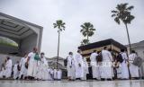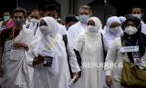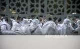 REPUBLIKA.CO.ID,BANDUNG -- Sejumlah calon jamaah haji mengikuti manasik haji di halaman Masjid Pusdai, Kota Bandung, Kamis (26/5/2022).