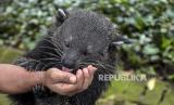 Wisatawan memberi pakan binturung (Arctictis binturong) di Bandung Zoological Garden (Bazooga), Kota Bandung, Kamis (26/5/2022). Pemerintah Provinsi Jawa Barat menargetkan pada tahun 2022 kunjungan wisatawan lokal ke Jawa Barat dapat mencapai 40 juta jiwa setelah dua tahun jumlah kunjungan wisatawan merosot tajam akibat pandemi Covid-19. Foto: Republika/Abdan Syakura (FOTO : REPUBLIKA/ABDAN SYAKURA)