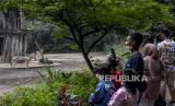Wisatawan berfoto di depan kandang satwa di Bandung Zoological Garden (Bazooga), Kota Bandung, Kamis (26/5/2022). Pemerintah Provinsi Jawa Barat menargetkan pada tahun 2022 kunjungan wisatawan lokal ke Jawa Barat dapat mencapai 40 juta jiwa setelah dua tahun jumlah kunjungan wisatawan merosot tajam akibat pandemi Covid-19. Foto: Republika/Abdan Syakura (FOTO : REPUBLIKA/ABDAN SYAKURA)