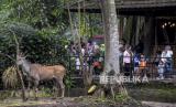 Wisatawan berjalan di depan kandang satwa di Bandung Zoological Garden (Bazooga), Kota Bandung, Kamis (26/5/2022). Pemerintah Provinsi Jawa Barat menargetkan pada tahun 2022 kunjungan wisatawan lokal ke Jawa Barat dapat mencapai 40 juta jiwa setelah dua tahun jumlah kunjungan wisatawan merosot tajam akibat pandemi Covid-19. (FOTO : REPUBLIKA/ABDAN SYAKURA)