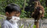 Wisatawan berada di dekat kandang orangutan sumatera (Pongo abelii) di Bandung Zoological Garden (Bazooga), Kota Bandung, Kamis (26/5/2022). Pemerintah Provinsi Jawa Barat menargetkan pada tahun 2022 kunjungan wisatawan lokal ke Jawa Barat dapat mencapai 40 juta jiwa setelah dua tahun jumlah kunjungan wisatawan merosot tajam akibat pandemi Covid-19. Foto: Republika/Abdan Syakura (FOTO : REPUBLIKA/ABDAN SYAKURA)