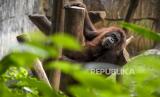 Orangutan sumatera (Pongo abelii) berada di dalam kandang Bandung Zoological Garden (Bazooga), Kota Bandung, Kamis (26/5/2022). Pemerintah Provinsi Jawa Barat menargetkan pada tahun 2022 kunjungan wisatawan lokal ke Jawa Barat dapat mencapai 40 juta jiwa setelah dua tahun jumlah kunjungan wisatawan merosot tajam akibat pandemi Covid-19. Foto: Republika/Abdan Syakura (FOTO : REPUBLIKA/ABDAN SYAKURA)