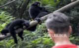 Wisatawan melihat siamang (Symphalangus syndactylus) di Bandung Zoological Garden (Bazooga), Kota Bandung, Kamis (26/5/2022). Pemerintah Provinsi Jawa Barat menargetkan pada tahun 2022 kunjungan wisatawan lokal ke Jawa Barat dapat mencapai 40 juta jiwa setelah dua tahun jumlah kunjungan wisatawan merosot tajam akibat pandemi Covid-19. Foto: Republika/Abdan Syakura (FOTO : REPUBLIKA/ABDAN SYAKURA)