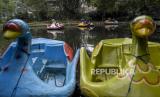 Wisatawan menaiki wahana perahu angsa di Bandung Zoological Garden (Bazooga), Kota Bandung, Kamis (26/5/2022). Pemerintah Provinsi Jawa Barat menargetkan pada tahun 2022 kunjungan wisatawan lokal ke Jawa Barat dapat mencapai 40 juta jiwa setelah dua tahun jumlah kunjungan wisatawan merosot tajam akibat pandemi Covid-19. Foto: Republika/Abdan Syakura (FOTO : REPUBLIKA/ABDAN SYAKURA)