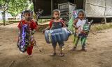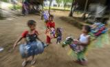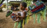 REPUBLIKA.CO.ID,PANDEGLANG -- Seorang bocah bermain Kuda Lumping Pandeglang di Desa Ujung Jaya, Pandeglang, Banten, Kamis (26/5/2022).