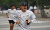 Pelatih sepak bola Timnas Indonesia Shin Tae-yong berlari saat memimpin sesi latihan perdana di Kawasan Gelora Bung Karno, Senayan, Jakarta, Kamis (26/5/2022). Timnas Indonesia memulai pemusatan latihan sebagai persiapan jelang laga FIFA Match Day Timnas Indonesia vs Bangladesh pada Rabu, 1 Juni di Bandung dan kualifikasi Piala Asia 2023 yang digelar pada 8-14 Juni di Kuwait. (FOTO : ANTARA/Hafidz Mubarak A)