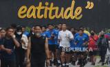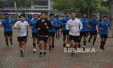 Sejumlah pesepak bola dan official Timnas Indonesia berlari saat mengikuti sesi latihan perdana di Kawasan Gelora Bung Karno, Senayan, Jakarta, Kamis (26/5/2022). Timnas Indonesia memulai pemusatan latihan sebagai persiapan jelang laga FIFA Match Day Timnas Indonesia vs Bangladesh pada Rabu, 1 Juni di Bandung dan kualifikasi Piala Asia 2023 yang digelar pada 8-14 Juni di Kuwait. (FOTO : ANTARA/Hafidz Mubarak A)