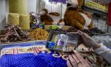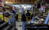 Pedagang melayani pembeli di pusat oleh-oleh haji dan umrah di kawasan Pasar Baru, Jalan Otto Iskandar Dinata, Kota Bandung, Jumat (27/5/2022). Pedagang di pasar tersebut menyatakan jelang pemberangkatan jamaah haji di Indonesia, omzet penjualan oleh-oleh haji dan umrah meningkat 60 persen hingga 80 persen dibandingkan dengan dua tahun terakhir yang terdampak pandemi Covid-19. Foto: Republika/Abdan Syakura (FOTO : REPUBLIKA/ABDAN SYAKURA)