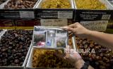 REPUBLIKA.CO.ID, BANDUNG -- Pedagang menata buah kurma di pusat oleh-oleh haji dan umrah di kawasan Pasar Baru, Jalan Otto Iskandar Dinata, Kota Bandung, Jumat (27/5/2022). Pedagang di pasar tersebut menyatakan jelang pemberangkatan jamaah haji di Indonesia, omzet penjualan oleh-oleh haji dan umrah meningkat 60 persen hingga 80 persen dibandingkan dengan dua tahun terakhir yang terdampak pandemi Covid-19.