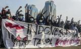 REPUBLIKA.CO.ID, JAKARTA -- Sejumlah massa yang tergabung dalam Barisan Masyarakat Anti Korupsi, Kolusi dan Nepotisme (BASMI KKN) melakukan aksi di kawasan Patung Kuda, Jakarta, Jumat (27/5/2022). Dalam aksi tersebut mereka menuntut pemerintah untuk mengatasi lonjakan harga dan kelangkaan minyak goreng di Indonesia serta menyelesaikan kasus pemberian fasilitas ekspor Crude Palm Oil (CPO).