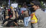 Sejumlah massa yang tergabung dalam Barisan Masyarakat Anti Korupsi, Kolusi dan Nepotisme (BASMI KKN) melakukan aksi di kawasan Patung Kuda, Jakarta, Jumat (27/5/2022). Dalam aksi tersebut mereka menuntut pemerintah untuk mengatasi lonjakan harga dan kelangkaan minyak goreng di Indonesia serta menyelesaikan kasus pemberian fasilitas ekspor Crude Palm Oil (CPO). (FOTO : Republika/Putra M. Akbar)