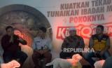 (Dari kiri) Head of National Philantrophy Network ACT Fadhli Septavianra, Koordinator Pengawasan dan Pengamanan Produk Hewan Kementrian Pertanian RI Imron Suandi, Dewan Syariah ACT Amir Faisol Fath dan Presiden Global Qurban Mukhti memberikan keterangan dalam pelucuran tema pelaksanaan ibadah qurban tahun 2022 di Menara 165, Jakarta, Jumat (27/5/2022). Global Qurban - ACT pada pelaksanaan ibadah kurban tahun ini mengusung tema Kuatkan Tekad, Kudu Qurban yang diharapkan kesadaran untuk berkurban betul-betul dimengerti oleh umat Islam. Prayogi/Republika. (FOTO : Prayogi/Republika.)