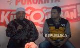 Presiden Global Qurban Mukhti (kanan) bersama Dewan Syariah ACT Amir Faisol Fath memberikan keterangan dalam pelucuran tema pelaksanaan ibadah qurban tahun 2022 di Menara 165, Jakarta, Jumat (27/5/2022). Global Qurban - ACT pada pelaksanaan ibadah kurban tahun ini mengusung tema Kuatkan Tekad, Kudu Qurban yang diharapkan kesadaran untuk berkurban betul-betul dimengerti oleh umat Islam. (FOTO : Prayogi/Republika.)