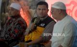 Dewan Syariah ACT Amir Faisol Fath (kiri) bersama Presiden Global Qurban Mukhti memberikan keterangan dalam pelucuran tema pelaksanaan ibadah qurban tahun 2022 di Menara 165, Jakarta, Jumat (27/5/2022). Global Qurban - ACT pada pelaksanaan ibadah kurban tahun ini mengusung tema Kuatkan Tekad, Kudu Qurban yang diharapkan kesadaran untuk berkurban betul-betul dimengerti oleh umat Islam. Prayogi/Republika. (FOTO : Prayogi/Republika. )