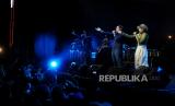 Pengunjung menyaksikan penampilan grup band Maliq & D Essential saat tampil di Jakarta International BNI Java Jazz Festival 2022 di JiExpo Kemayoran, Jakarta Pusat, Jumat (27/5/2022). Perhelatan festival musik tahunan tersebut kini kembali di gelar selama 3 hari mulai dari tanggal 27 Mei hingga 29 Mei 2022 setelah vakum selama 2 tahun akobat pandemi Covid-19. (FOTO : Republika/Thoudy Badai)