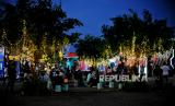 Pengunjung beraktivitas saat perhelatan Jakarta International BNI Java Jazz Festival 2022 di JiExpo Kemayoran, Jakarta Pusat, Jumat (27/5/2022). Perhelatan festival musik tahunan tersebut kini kembali di gelar selama 3 hari mulai dari tanggal 27 Mei hingga 29 Mei 2022 setelah vakum selama 2 tahun akobat pandemi Covid-19. Republika/Thoudy Bada (FOTO : Republika/Thoudy Badai)
