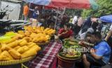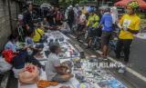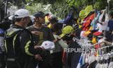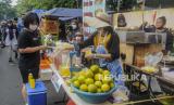 Sejumlah pedagang melayani pembeli saat Hari Bebas Kendaraan Bermotor (HBKB) di Jalan Sumenep, Menteng, Jakarta, Ahad (29/5/2022). Pemerintah Provinsi DKI Jakarta mengizinkan pedagang untuk kembali berjualan saat HBKB, namun hanya berjualan di luar area lintasan HBKB. (FOTO : Republika/Putra M. Akbar)