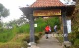 Wisatawan berjalan-jalan di Dusun Girpasang, Klaten, Jawa Tengah, Senin (30/5/2022). Usai pembangunan jembatan gantung dengan panjang 130 meter Dusun Girpasang berubah dari desa terpencil menjadi desa yang menjadi tujuan wisata. Dusun terdekat dengan Gunung Merapi ini menjadi lokasi wisata baru bagi warga Yogyakarta dan Klaten. Beberapa restoran dan warung kopi milik warga juga banyak berdiri di sekitar lokasi jembatan gantung. (FOTO : Wihdan Hidayat / Republika)