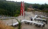 Restoran dan warung kopi dibangun di sekitar jembatan gantung Dusun Girpasang, Klaten, Jawa Tengah, Senin (30/5/2022). Usai pembangunan jembatan gantung dengan panjang 130 meter Dusun Girpasang berubah dari desa terpencil menjadi desa yang menjadi tujuan wisata. Dusun terdekat dengan Gunung Merapi ini menjadi lokasi wisata baru bagi warga Yogyakarta dan Klaten. Beberapa restoran dan warung kopi milik warga juga banyak berdiri di sekitar lokasi jembatan gantung. (FOTO : Wihdan Hidayat / Republika)