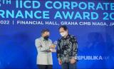 REPUBLIKA.CO.ID, JAKARTA -- Vice Chairman Research IICD, Lukas Setia Atmaja menyerahkan trofi penghargaan kategori Best Right of Shareholders Corporate Governance Award 2022 kepada Direktur SDM dan Umum SIG, Agung Wiharto di Jakarta, Jumat (27/5).