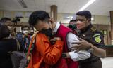 Terdakwa kasus dugaan pelanggaran Undang-Undang (UU) ITE Adam Deni?Gearaka (tengah) memeluk orang tuanya usai menjalani sidang pembacaan tuntutan di Pengadilan Negeri Jakarta Utara, Senin (30/5/2022). Jaksa Penuntut Umum menuntut Adam Deni Gearaka dan Ni Made Dwita dengan hukuman delapan tahun penjara dan denda Rp1 miliar subsider?lima bulan kurungan. (FOTO : ANTARA/Dhemas Reviyanto)