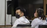 Terdakwa kasus pelanggaran Undang-Undang (UU) ITE Adam Deni?Gearaka (kiri) dan Ni Made Dwita (kanan) menjalani sidang pembacaan tuntutan di Pengadilan Negeri Jakarta Utara, Jakarta, Senin (30/5/2022). Jaksa Penuntut Umum menuntut kedua terdakwa dengan hukuman delapan tahun penjara dan denda Rp1 miliar subsider?lima bulan kurungan. (FOTO : ANTARA/Dhemas Reviyanto)