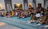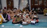 Anak-anak yatim hadir bersama keluarga besar, sejumlah ulama, pejabat ikut serta dalam doa bersama untuk putra sulung Gubernur Jawa Barat Ridwan Kamil, Emmeril Khan Mumtadz (Eril) di rumah dinas Gubernur Jawa Barat Gedung Pakuan, Kota Bandung. Senin (30/5). Hingga kini pihak keluarga masih menantikan kabar baik terkait musiibah yang menimpa Eril yang hilang di Sungai Aare di Bern, Swiss. (FOTO : Edi Yusuf/Republika)