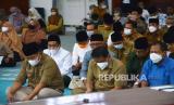 Wakil Gubernur Jawa Barat Uu Ruzhanul Ulum bersama keluarga besar, sejumlah ulama, pejabat dan anak yatim ikut serta dalam doa bersama untuk putra sulung Gubernur Jawa Barat Ridwan Kamil, Emmeril Khan Mumtadz (Eril) di Gedung Pakuan, Kota Bandung. Senin (30/5). Hingga kini pihak keluarga masih menantikan kabar baik terkait musiibah yang menimpa Eril yang hilang di Sungai Aare di Bern, Swiss. (FOTO : Edi Yusuf/Republika)