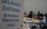 REPUBLIKA.CO.ID, SOLO -- Peserta mengikuti program pelatihan digital saat mengikuti kelas Rumah Teknologi Solo di Lokananta, Solo, Jawa Tengah, Senin (30/5/2022).