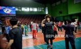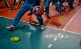 Peserta mengikuti sesi latihan bersama Akademi Pelatih Jr. NBA di GOR Bulungan, Jakarta Selatan, Selasa (31/5/2022). Akademi Pelatih Jr. NBA kembali menggelar untuk pertama kalinya sesi latihan bersama sejumlah siswa dan pengajar secara offline setelah selama dua tahun mengelar kegiatan secara online akibat pamdemi Covid-19. Kegiatan yang diikuti oleh sejumlah siswa dan guru olahraga tersebut diharapkan mampu membekali peserta dengan standar pelatihan Akademi Jr. NBA. (FOTO : Republika/Thoudy Badai)