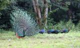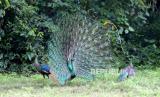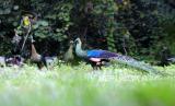 REPUBLIKA.CO.ID, Sekor merak hijau (Pavo muticus) jantan mengembangkan bulu ekornya untuk menarik perhatian merak hijau betina di padang savana Sadengan, Taman Nasional Alas Purwo, Banyuwangi, Jawa Timur, Senin (30/5/2022). Petugas mengatakan saat ini di Taman Nasional Alas Purwo telah memasuki musim kawin merak hijau yang diperkirakan berlangsung hingga bulan November.