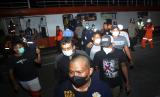 REPUBLIKA.CO.ID, MAKASSAR -- Korban selamat dari tenggelamnya KM Ladang Pertiwi Dua turun dari KN SAR Kamajaya di Pelabuhan Peti Kemas, Makassar, Sulawesi Selatan, Senin (30/5/2022). Dua korban selamat dari tenggelamnya KM Ladang Pertiwi Dua yang merupakan juragan kapal dan ABK tersebut di evakuasi ke Makassar untuk dimintai keterangan guna menyelidiki penyebab tenggelamnya kapal, sementara total korban selamat menjadi 31 orang dan 11 orang masih dalam pencarian.
