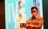 Ketua II Asosiasi Kaca Lembaran & Pengaman (AKLP) Putra Narjadin menyampaikan materi paparannya pada acara konferensi pers akan adanya pameran glasstec di Jakarta, Senin (31/5/2022). Pameran ini akan dilaksanakan di Dusseldorf, Jerman pada 20-23 September mendatang dengan rangkaian pameran produksi kaca / teknologi manufaktur, pemprosesan kaca dan finishingnya untuk berbagai produk kaca. Foto: Darmawan / Republika. (FOTO : Republika/Darmawan)