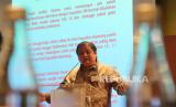 Perwakilan Republik Indonesia Messe Düsseldorf GmbH Vera Siregar menyampaikan materi paparannya pada acara konferensi pers akan adanya pameran glasstec di Jakarta, Senin (31/5/2022). Pameran ini akan dilaksanakan di Dusseldorf, Jerman pada 20-23 September mendatang dengan rangkaian pameran produksi kaca / teknologi manufaktur, pemprosesan kaca dan finishingnya untuk berbagai produk kaca. Foto: Darmawan / Republika. (FOTO : Republika/Darmawan)