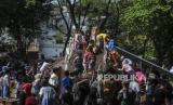Anak-anak saat bermain di Tebet Eco Park, Jakarta, Rabu (1/6/2020). Pada libur Hari Lahir Pancasila, Tebet Eco Park menjadi destinasi wisata alternatif bagi warga yang ingin mengisi hari libur untuk berwisata bersama keluarga. Republika/Putra M. Akbar (FOTO : Republika/Putra M. Akbar)