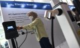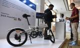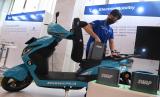 REPUBLIKA.CO.ID,JAKARTA -- Petugas mengganti baterai motor listrik dalam pameran Festival Energi Terbarukan [RE]Spark di Jakarta, Kamis (2/6/2022).