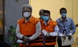 Tersangka mantan Dirut Perum Percetakan Negara Isnu Edhi Wijaya (kiri) bersama tersangka mantan Ketua Tim Teknis Teknologi Informasi Penerapan KTP Elektronik Husni Fahmi (kedua kanan) berjalan usai menjalani pemeriksaan di Gedung Merah Putih KPK, Jakarta, Kamis (2/6/2022). KPK menyatakan berkas perkara terkaitkasus korupsi pengadaan paket penerapan kartu tanda penduduk elektronik (E-KTP) Tahun Anggaran 2011-2013 yang menyeret Isnu Edhi Wijaya dan Husni Fahmi telah lengkap dan siap diadili. Republika/Thoudy Badai (FOTO : Republika/Thoudy Badai)