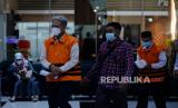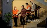 Tersangka mantan Dirut Perum Percetakan Negara Isnu Edhi Wijaya bersama tersangka mantan Ketua Tim Teknis Teknologi Informasi Penerapan KTP Elektronik Husni Fahmi berjalan usai menjalani pemeriksaan di Gedung Merah Putih KPK, Jakarta, Kamis (2/6/2022). KPK menyatakan berkas perkara terkaitkasus korupsi pengadaan paket penerapan kartu tanda penduduk elektronik (E-KTP) Tahun Anggaran 2011-2013 yang menyeret Isnu Edhi Wijaya dan Husni Fahmi telah lengkap dan siap diadili. Republika/Thoudy Badai (FOTO : Republika/Thoudy Badai)