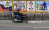 Pengendara motor melintas di dekat mural di kawasan Ancol, Jakarta, Kamis (2/6/2022). Sebanyak 495 mural dibuat sepanjang Jalan RE Martadinata dalam rangka menyambut HUT ke-495 DKI Jakarta. (FOTO : Republika/Putra M. Akbar)