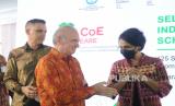 Duta Besar Perancis untuk Indonesia Mr. Olivier Chambard (tengah), Sekretaris Jenderal Kemendikbudristek Suharti (kanan) dan Cluster President Schneider Electric Indonesia & Timor Leste Roberto Rossi (kiri) berikan selamat saat meresmikan pembukaan revitalisasi fasilitas laboratorium di SMKN 1 Cikarang Selatan, Bekasi, Jawa Barat, Selasa (2/6/2022). (FOTO : Tahta Aidilla/Republika)