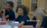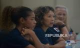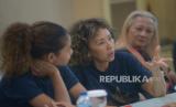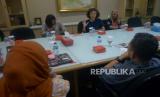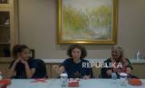 REPUBLIKA.CO.ID, JAKARTA -- Produser film Satria Dewa: Gatotkaca, Celerina Judisari (tengah) memberikan paparan saat berkunjung ke kantor Republika, Jakarta, Kamis (2/6/2022). Kunjungan tersebut dalam rangka promosi film Satria Dewa: Gatotkaca yang akan tayang di bioskop pada 9 Juni 2022.