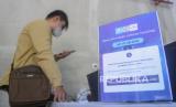 Petugas melayani warga menukarkan tiket elektronik pertandingan balap Formula E dengan tiket fisik di Taman Ismail Marzuki, Jakarta, Jumat (3/6/2022). Pihak Organizing Committee (OC) Jakarta E-Prix menyiapkan tiga lokasi penukaran tiket elektronik di Thamrin CIty, Taman Ismail Marzuki dan Velodrome Rawamangun hingga 3 Juni 2022. Republika/Putra M. Akbar (FOTO : Republika/Putra M. Akbar)