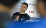 Pembalap tim Mercedes EQ Formula E Team Stoffel Vandoorne memberikan keterangan pers di Media Center Jakarta E-Prix 2022, Sirkuit Jakarta International E-Prix Circuit (JIEC), Ancol, Jakarta Utara, DKI Jakarta, Jumat (3/6/2022). Ajang mobil balap listrik Formula E Jakarta E-Prix 2022 akan digelar pada Sabtu (4/6/2022) dan diikuti oleh 22 pembalap yang bernaung di 11 tim balap. Foto: Republika/Abdan Syakura (FOTO : REPUBLIKA/ABDAN SYAKURA)