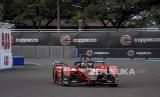 Sejumlah pembalap Formula E melakukan uji coba lintasan secara langsung menggunakan mobil balap listrik jelang gelaran balap mobil Formula E Jakarta E-Prix 2022 yang dimulai pada Sabtu (4/6/2022).