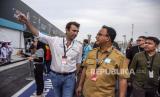 REPUBLIKA.CO.ID, JAKARTA -- Gubernur DKI Jakarta Anies Baswedan  berbincang dengan Chief Competition Officer Formula E (E-Prix) Alberto Longo meninjau sesi uji coba lintasan (shakedown) Jakarta E-Prix 2022 di Sirkuit Jakarta International E-Prix Circuit (JIEC), Ancol, Jakarta Utara, DKI Jakarta, Jumat (3/6/2022).