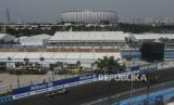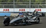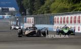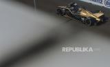 REPUBLIKA.CO.ID, JAKARTA -- Pembalap tim DS Techeetah Antonia Felix da Costa (tengah) memacu kecepatan saat babak kualifikasi Formula E seri kesembilan di Jakarta International E-Prix Circuit (JIEC), Jakarta, Sabtu (4/6/2022). Jean Eric Vergne mengalahkan rekan satu timnya Antonia Felix da Costa pada babak kualifikasi Formula E.