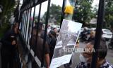 Bunga bertulisakan ucapan belasungkawa ditempel warga di pintu gerbang saat acara takziah untuk putra sulung Gubernur Jawa Barat Ridwan Kamil, Emmeril Kahn Mumtadz atau Eril, di rumah dinas Gubernur Jawa Barat Gedung Pakuan, Kota Bandung, Sabtu (4/6). Acara takziah ini terdiri dari doa bersama, salat gaib, dan penyampaian bela sungkawa dari berbagai pihak. (FOTO : Edi Yusuf/Republika)
