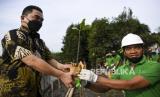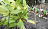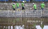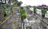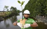 REPUBLIKA.CO.ID, JAKARTA -- Petugas menunjukkan bibit mangrove 'Rhizopora Mucronata' yang akan ditanam di Pelabuhan KCN Marunda, Jakarta, Jumat (3/6/2022). Pada tahap kedua ini, PT KCN menanam bibit mangrove 'Rhizopora Mucronata' di lahan sepanjang 1.100 meter yang sebelumnya pada tahap pertama telah melakukan penanaman mangrove di lahan sepanjang 600 meter perimeter selatan KCN dalam rangka mewujudkan visi sebagai terminal ramah lingkungan (Green Port).