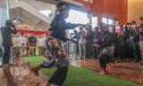 Dua pesilat memainkan jurus aliran Cimande dalam tradisi Parebut Seeng di Gedung DPRD Kabupaten Bogor, Jawa Barat, Jumat (3/6/2022). Parebut Seeng atau Rampag Seeng yang merupakan salah satu kesenian bela diri khas tatar Sunda yang melegenda itu ditampilkan dalam rangka memperingati Hari Jadi Bogor ke-540. (FOTO : ANTARA/Yulius Satria Wijaya)