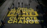 Aktivis Greenpeace membentangkan poster dan spanduk dalam aksi memperingati Hari Lingkungan Hidup Sedunia dan Hari Sepeda Sedunia di Jalan Sudirman, Semanggi, Jakarta, Ahad (5/6/2022). Aksi bersama Greenpeace dan Bike2Work tersebut bertujuan mendorong agar sepeda menjadi solusi pembangunan rendah karbon dan Jakarta menjadi kota ramah bagi pengguna sepeda. (FOTO : Prayogi/Republika.)